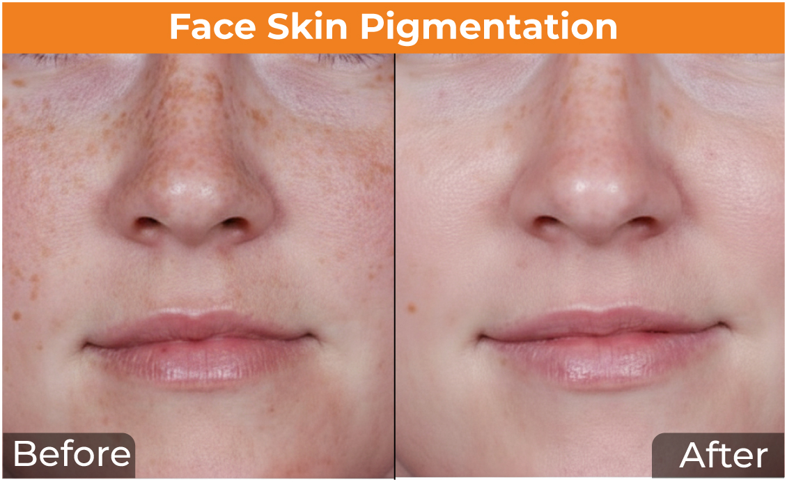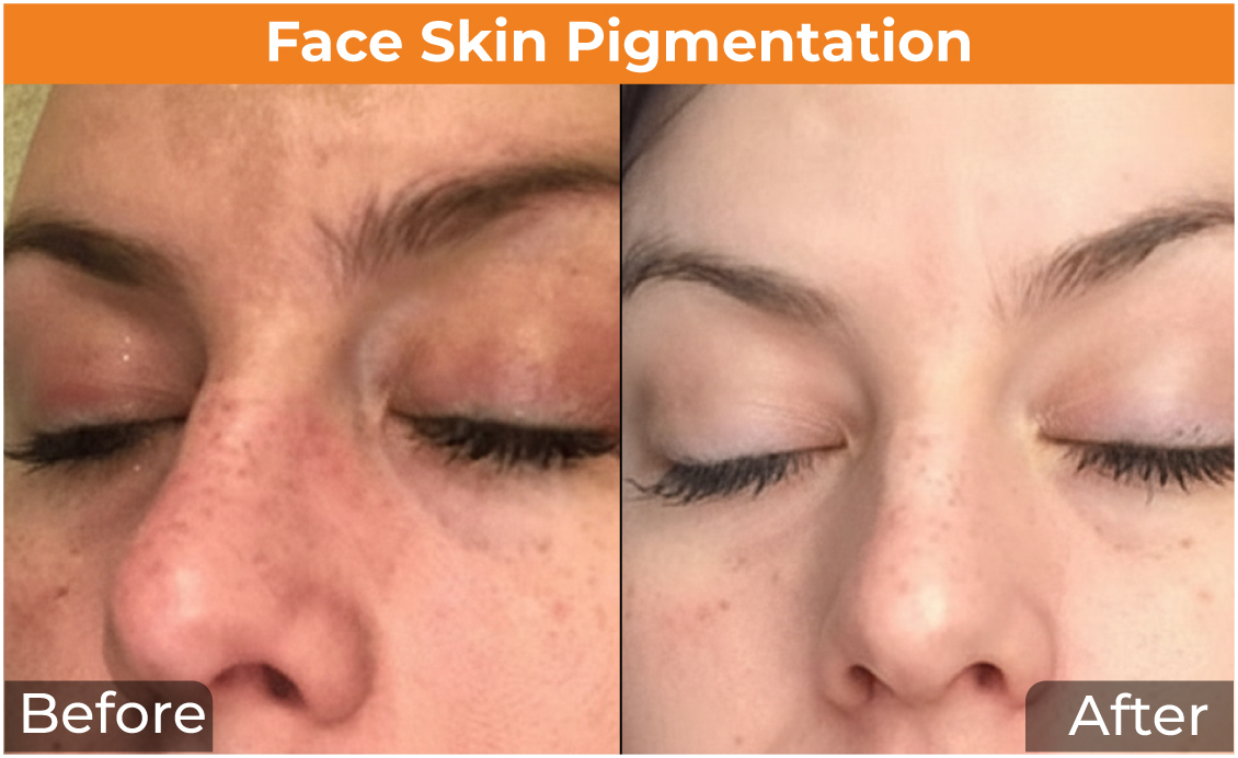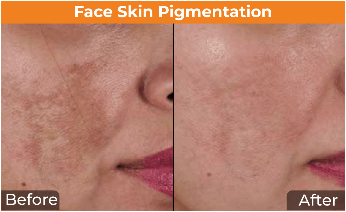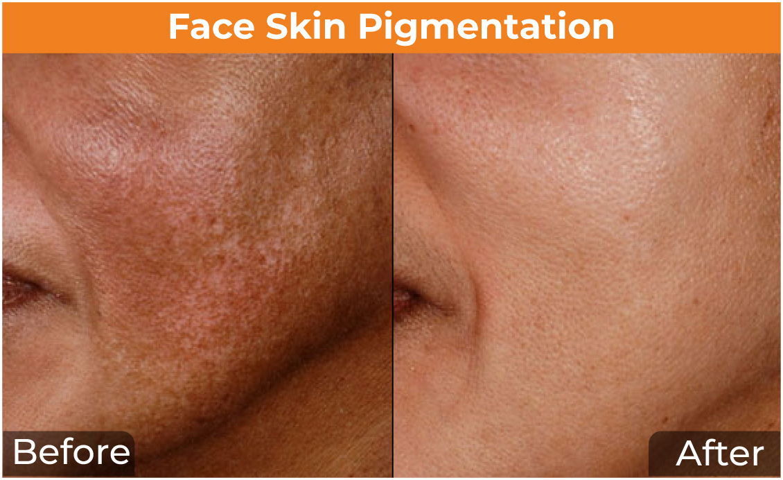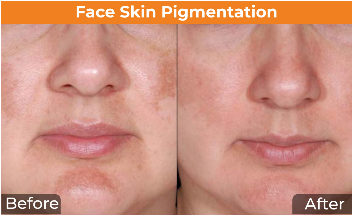 Most of the Pigmentation treatment options are quite painless. However, laser treatment may cause minimal discomfort, but the pain is relieved by applying a local anesthetic cream on the area of skin to be treated.